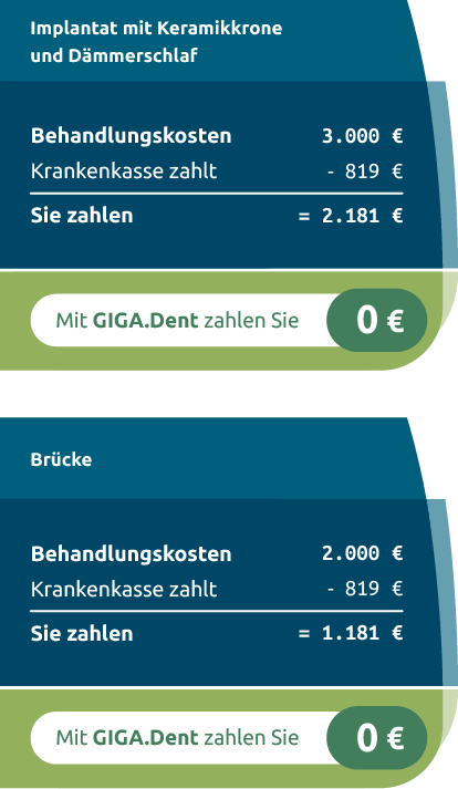Eine Zahnzusatzversicherung zahlt die Kosten für Behandlungen beim Zahnarzt, die nicht oder nur teilweise von Ihrer gesetzlichen Krankenversicherung (GKV) übernommen werden. Dies gilt auch für hochwertigen Zahnersatz, wie z. B. Implantate. Durch eine Zahnzusatzversicherung verringert sich Ihr Eigenanteil bei hohen Zahnarztrechnungen oder wird sogar ganz vermieden.